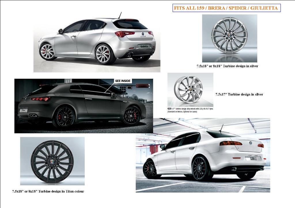 A couple of simple additions will transform your 159 into the 159ti look. Package includes side skirts, 18" wheels (19" available too) and TI badges. Extra options are lowering suspension, exhaust, mirror caps, red brake calipers.